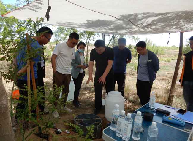 監(jiān)理專家組通過室內(nèi)聽取匯報、檢查資料和野外實地考察,全面了解項目進展情況,著重考察項目近期完成的物探、探井以及水文地質(zhì)試驗等工作。