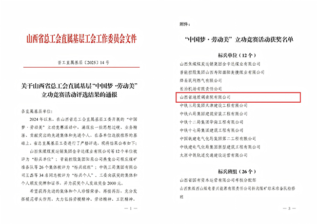 近日,山西省總工會(huì)直屬基層工委公布“中國(guó)夢(mèng)·勞動(dòng)美”立功競(jìng)賽評(píng)選結(jié)果,地調(diào)院有限公司憑借在地質(zhì)勘查與生態(tài)保護(hù)領(lǐng)域的突出貢獻(xiàn),獲評(píng)“標(biāo)兵單位”稱(chēng)號(hào),彰顯了國(guó)有公益類(lèi)科技型企業(yè)的責(zé)任擔(dān)當(dāng)與創(chuàng)新實(shí)力。