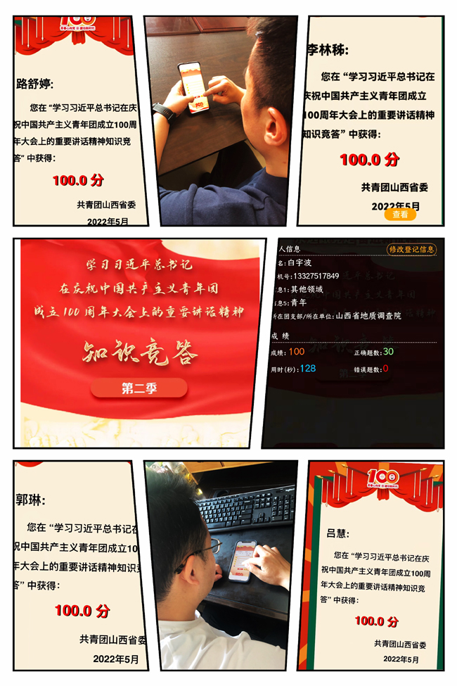 5月24日,地調(diào)院有限公司團委組織開展“學(xué)習(xí)習(xí)近平總書記在慶祝中國共產(chǎn)主義青年團成立100周年大會上的重要講話精神”線上知識競答活動。
