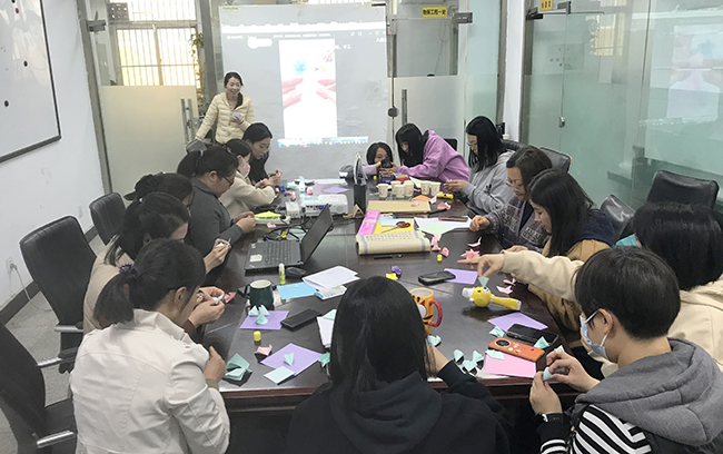 大家選擇自己喜歡的折紙和花型,結(jié)合從網(wǎng)上學習的折紙花教程,興致勃勃地交流學習,互幫互助相互協(xié)作,現(xiàn)場氣氛其樂融融,一會功夫一朵朵栩栩如生的折紙花便在大家手中誕生?;顒咏Y(jié)束后各分工會向全體女同志發(fā)放了節(jié)日禮品,送去公司工會的祝福和慰問。