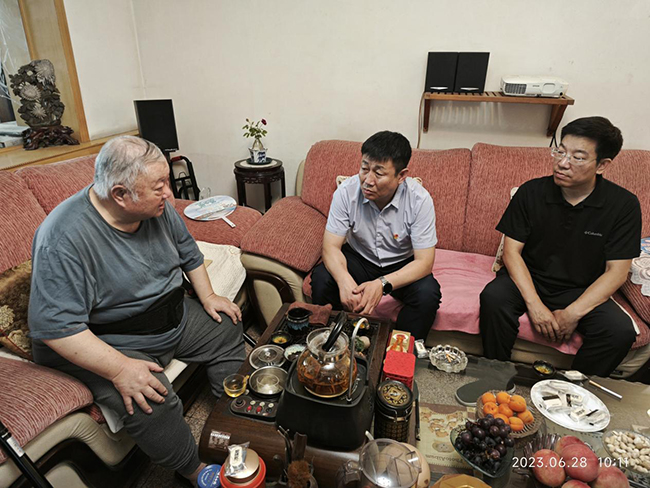 郭紅黨、王曉冬一行先后來到白建中、朱光麟、王隨生等老黨員家中,與老同志促膝交談,關(guān)切地詢問了他們的身體狀況、生活情況、困難需求以及對公司發(fā)展的寶貴建議,認真傾聽他們講述當年的奮斗歷程,并發(fā)放了慰問金,向他們致以親切問候,鼓勵他們堅定信心,叮囑他們在生活中遇到困難及時向黨組織反映,一如既往地保持積極樂觀心態(tài),保重身體。郭紅黨表示,老黨員是黨和國家的寶貴財富,他們?yōu)辄h和地勘事業(yè)發(fā)展做出的貢獻,我們永遠不能忘記,要做他們優(yōu)良傳統(tǒng)和崇高精神的傳承者。