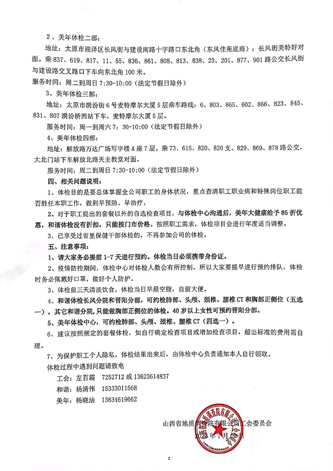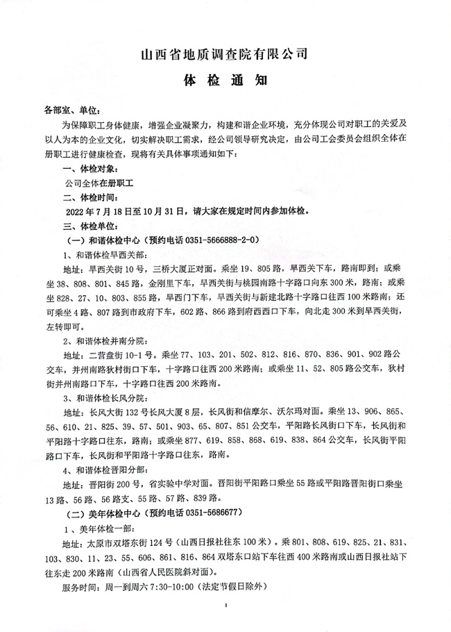 2022年度體檢通知