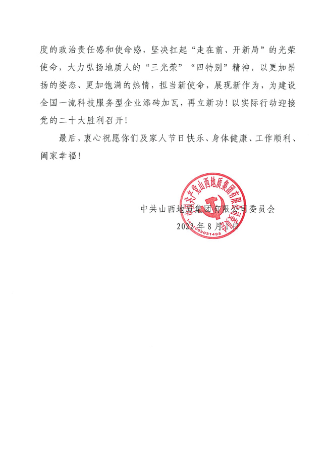 山西地質(zhì)集團(tuán)致集團(tuán)全體退役軍人的一封信
