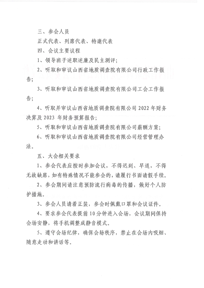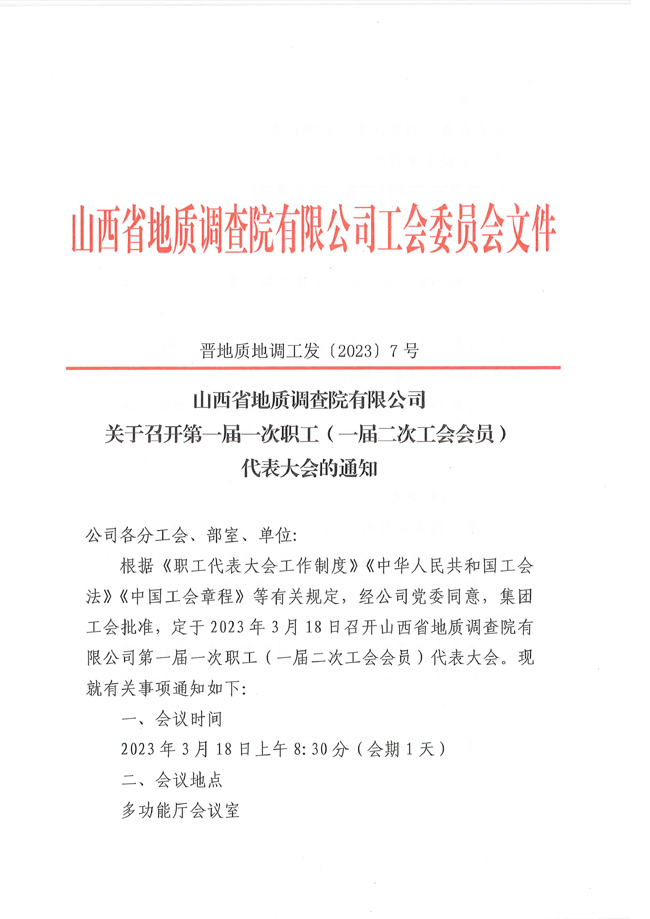 地調(diào)院有限公司關于召開第一屆一次職工(一屆二次)代表大會通知