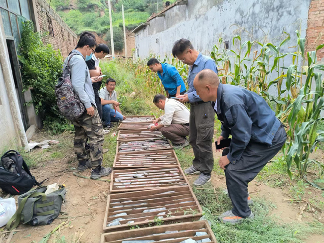 在野外,王教授主要對(duì)地表見(jiàn)礦探槽及鉆孔巖心進(jìn)行了仔細(xì)觀察,現(xiàn)場(chǎng)與技術(shù)人員進(jìn)行了充分溝通,提出了許多新觀點(diǎn),新認(rèn)識(shí)。在聽(tīng)取匯報(bào)和野外實(shí)地勘查后,王教授根據(jù)自己對(duì)金礦的認(rèn)識(shí)與技術(shù)人員進(jìn)行交流,王權(quán)總工介紹了晉西北地區(qū)金礦近些年來(lái)的找礦成果及實(shí)際勘查中遇到的困難與問(wèn)題,而后大家圍繞山西金礦地質(zhì)勘查主要方向進(jìn)行了研討,雙方均表示將充分發(fā)揮各自優(yōu)勢(shì),挖掘合作潛力,加快實(shí)現(xiàn)金礦找礦突破。