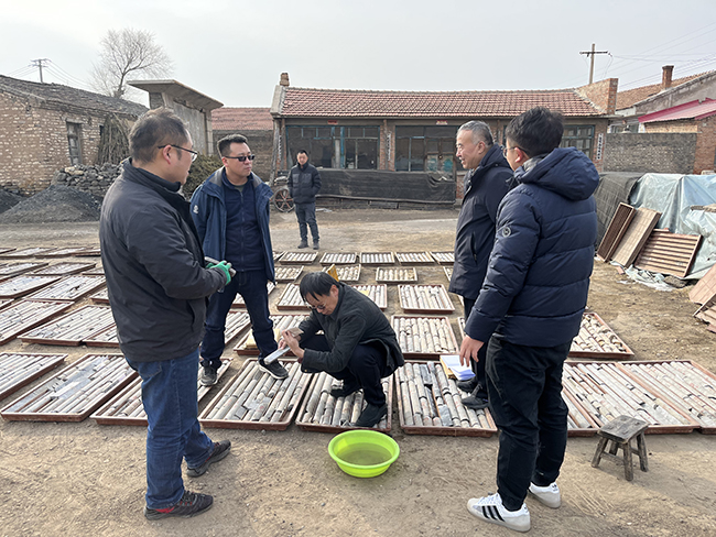 監(jiān)理組首先聽取了項(xiàng)目組關(guān)于項(xiàng)目進(jìn)展、鉆探成果及質(zhì)量體系運(yùn)行情況的匯報(bào),隨后赴野外抽查了2個(gè)鉆孔的巖心,重點(diǎn)檢查了巖心采取率、巖心采樣等質(zhì)量情況,最后在室內(nèi)對鉆孔班報(bào)記錄、巖心地質(zhì)編錄、巖心采樣記錄等各項(xiàng)原始資料進(jìn)行了檢查,并提出了修改意見。同時(shí)復(fù)核了項(xiàng)目組對上次監(jiān)理問題的修改情況。