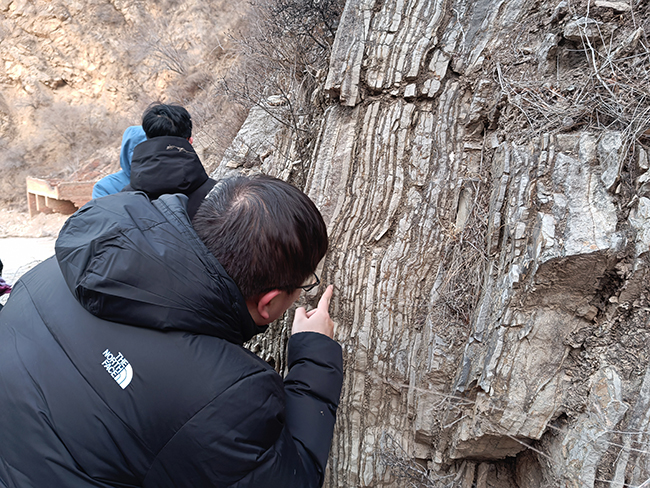 在培訓(xùn)過(guò)程中,李建榮帶領(lǐng)大家深入野外實(shí)地,詳細(xì)了解山西省基礎(chǔ)地質(zhì)條件和地層出露與分布情況。張佳正就黃土工程地質(zhì)特性、黃土地質(zhì)災(zāi)害及相關(guān)防治工程對(duì)照野外實(shí)例進(jìn)行了講解。通過(guò)實(shí)地觀察、測(cè)量等方式,參訓(xùn)人員進(jìn)一步加深了對(duì)各類(lèi)地質(zhì)構(gòu)造、地層層序、巖性特性的認(rèn)識(shí)。