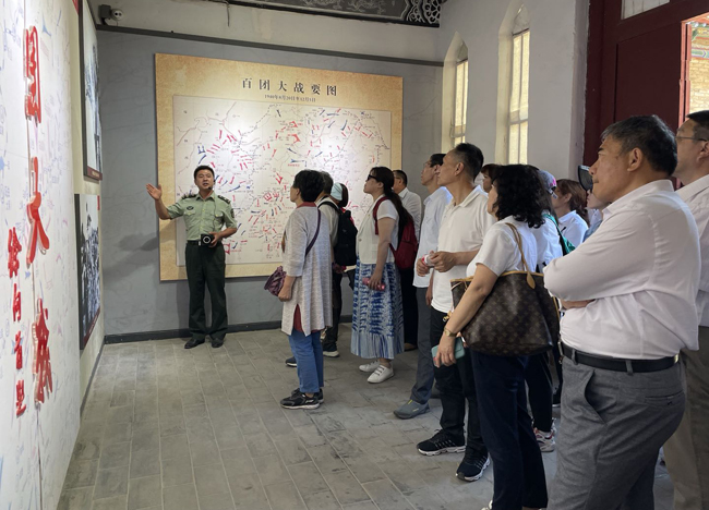 大家懷著無比崇敬的心情依次參觀了坐落在太行山西麓,蔭隱于山脈青綠之中的八路軍總司令部舊址:山西省長治市武鄉(xiāng)縣磚壁村、王家裕村。紅軍東渡、洛川會議、平型關大捷、百團大戰(zhàn)、敵后抗戰(zhàn)……通過各紀念館講解員的詳實講解,一幅幅珍貴圖片、一件件歷史文物、一個個真實往事,把大家?guī)肫D苦卓絕的抗戰(zhàn)歲月。黨員同志不時駐足,認真聽取講解,詢問有關細節(jié),了解當年戰(zhàn)斗歷史和感人事跡,感受信仰力量,體悟思想偉力,深刻領會我們黨領導人民浴血奮戰(zhàn)的光輝歷程,為民族獨立和人民解放作出的偉大貢獻。