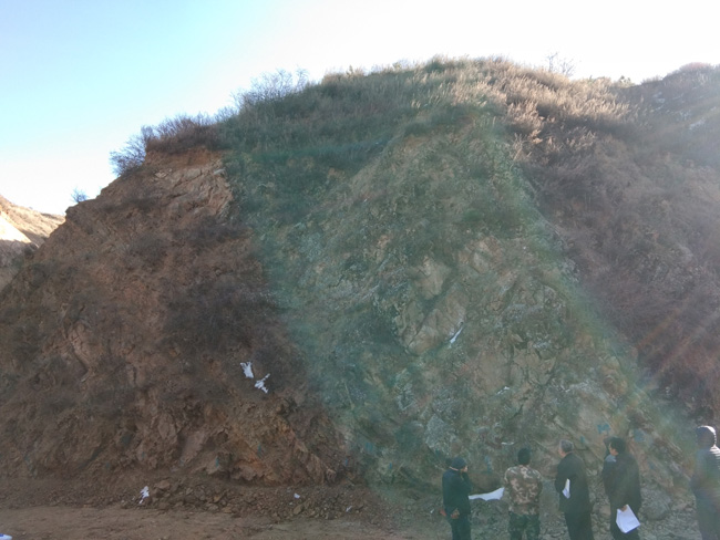 專家組首先聽(tīng)取了項(xiàng)目組對(duì)項(xiàng)目概況、完成工作量、工作質(zhì)量、主要成果等方面的匯報(bào),重點(diǎn)檢查了各類原始資料,野外實(shí)地檢查探槽編錄與采樣質(zhì)量,與項(xiàng)目組技術(shù)人員交流分析異常原因,明確了下一步找礦方向。專家組充分肯定項(xiàng)目取得的成果,最終形成野外驗(yàn)收意見(jiàn)。