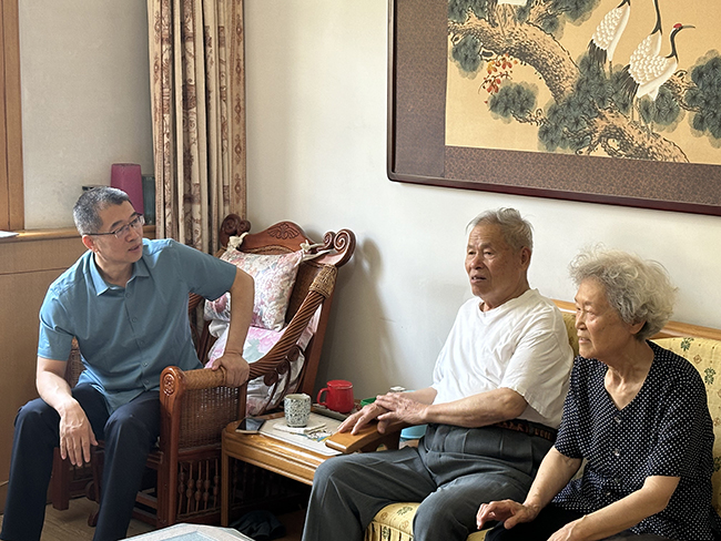 陳巖、王曉冬先后來到老黨員陳家妍、葉秀蓬家中,與老同志促膝交談,關(guān)切詢問身體狀況、醫(yī)療保障和生活近況,并發(fā)放了慰問金。