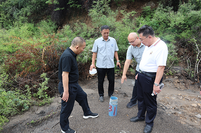 2025年8月21日,山西地質(zhì)集團(tuán)有限公司黨委專職副書記、副董事長、工會(huì)主席杜玉河,工會(huì)專職副主席張建民一行,赴山西省地質(zhì)調(diào)查院有限公司承擔(dān)的呂梁市交口縣西莊村老窯水污染防控與修復(fù)治理項(xiàng)目現(xiàn)場,看望慰問奮戰(zhàn)在生態(tài)治理一線干部職工,并開展汛期安全生產(chǎn)檢查工作。地調(diào)院有限公司黨委副書記、副董事長、總經(jīng)理韓武波,黨委專職副書記、副董事長、工會(huì)主席陳巖陪同前往。