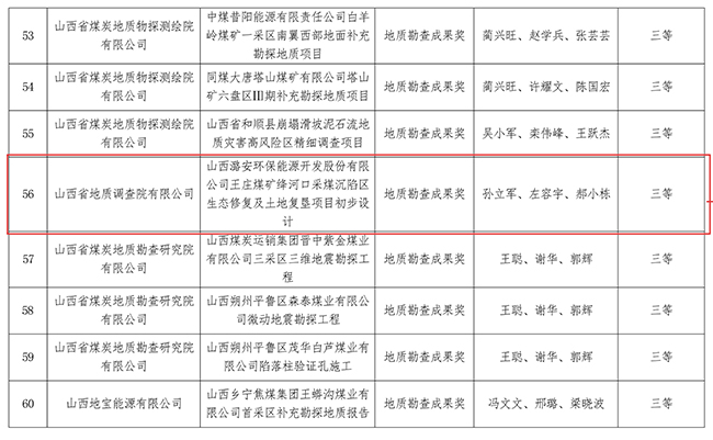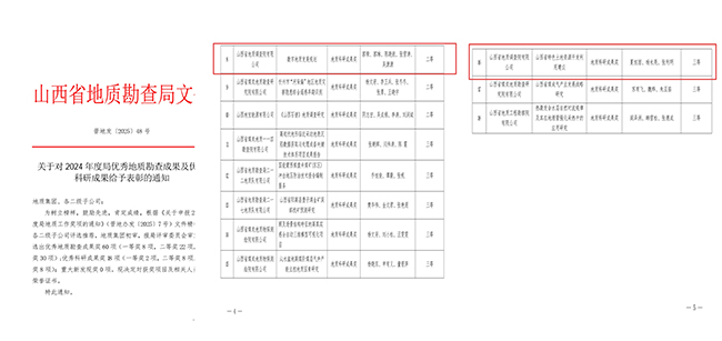 山西省地質(zhì)調(diào)查院有限公司2024年度地質(zhì)成果“大豐收”