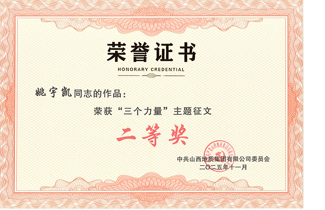 在“清風晉韻”微視頻評選中,公司作品《跨越時空的回響——在與地質(zhì)前輩的時光碰撞中告別“躺平”》榮獲二等獎。(視頻鏈接:https://pan.baidu.com/s/1CsJ5jA_36wojP6M28UpDoQ?pwd=aupe),該作品以創(chuàng)新視聽語言融合廉潔理念與地質(zhì)職業(yè)精神,生動呈現(xiàn)新時代地質(zhì)人堅守初心、廉潔從業(yè)的優(yōu)良形象,是公司紀委運用新媒體載體深化廉政教育、筑牢思想防線的生動實踐。